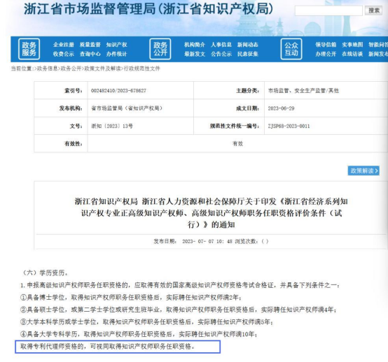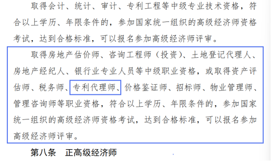 近年来随着越来越多的专利代理师报名参加知识产权师考试,而中级知识产权师考试中的经济基础,对考试者来说还是比较有难度的;但专利代理师从事专利代理等知识产权工作也要通过严格的考试、实习和执业才能正式进入知识产权服务行业。况且知识产权师的工作更需要有专业基础和专业背景的人员,因此不少省市已明确规定持有“专利代理师”资格的人员符合一定条件可以直接参评“高级知识产权师”职称。此举措不仅是对专利代理师资格的认可,也是吸引更多的优秀专业人员进入到知识产权师的职称队伍中。